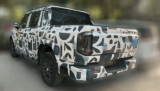 透過偽裝我們看,新車整體采用較為方正硬朗的車身線條,前臉造型也很大程度延續概念車的設計,越野風味的前保險杠,硬漢十足,當然也許還不是最終的量產狀態,并且目前,該車的接近角也有不錯的表現。